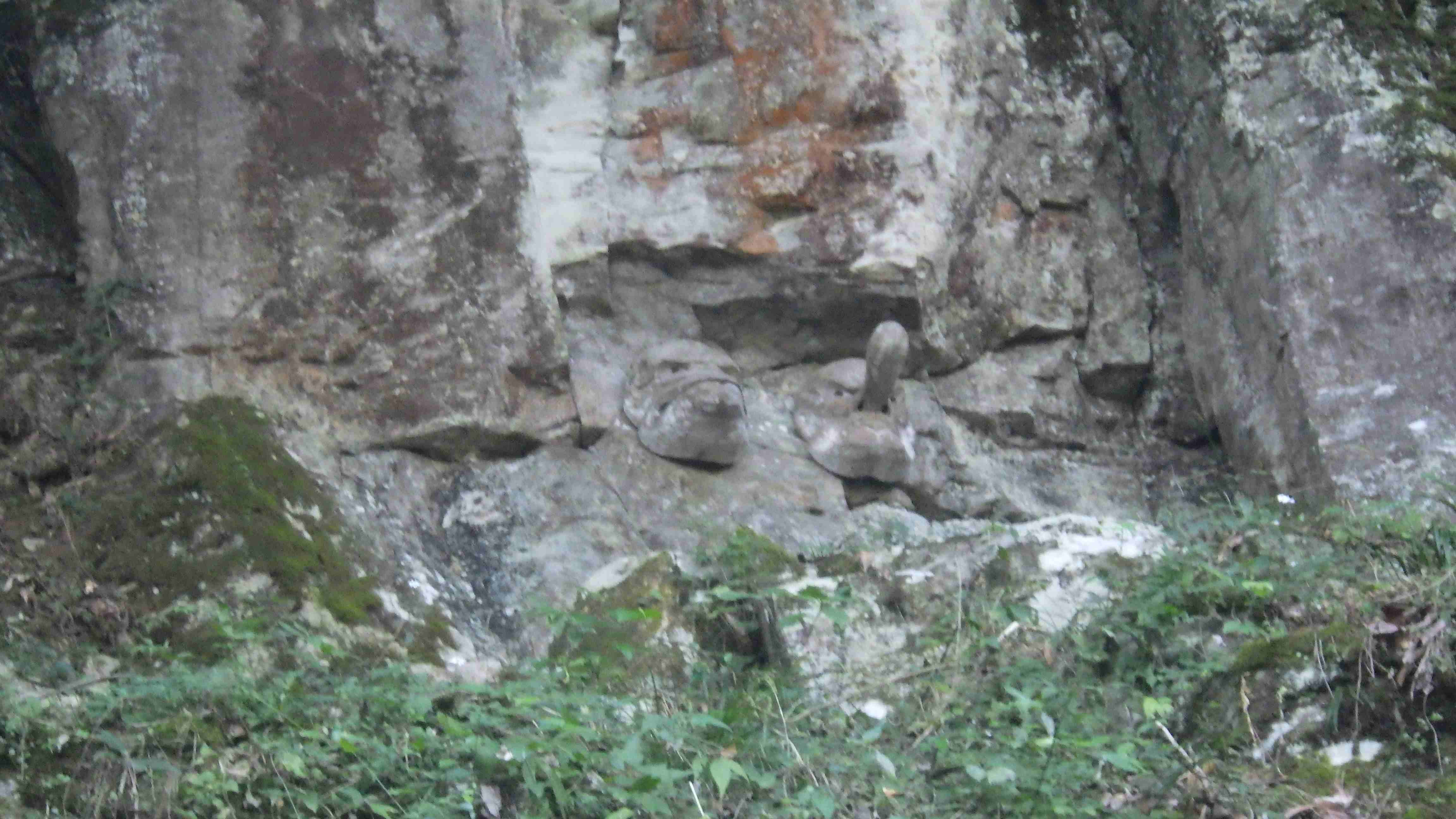 奥之院のすぐ横は地層がむき出しになって居る岩壁がありますが、そこにはカラス天狗と天狗の顔が掘り出されていました。奥之院をお守りしているのかな?ありがたい感じです(^-^)善通寺市訪問記につづく