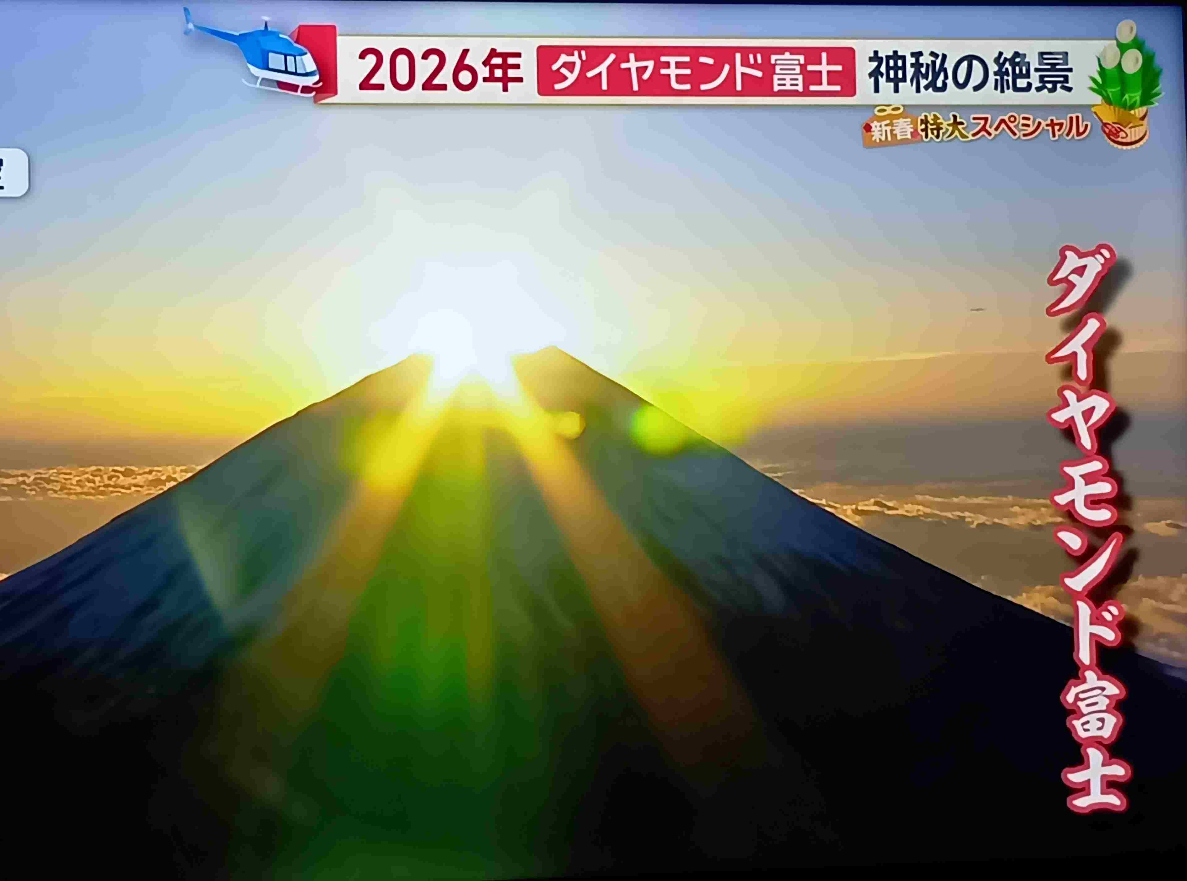 この富士山の日の出は、今朝ライブ放送でTVに映された初日の出です。