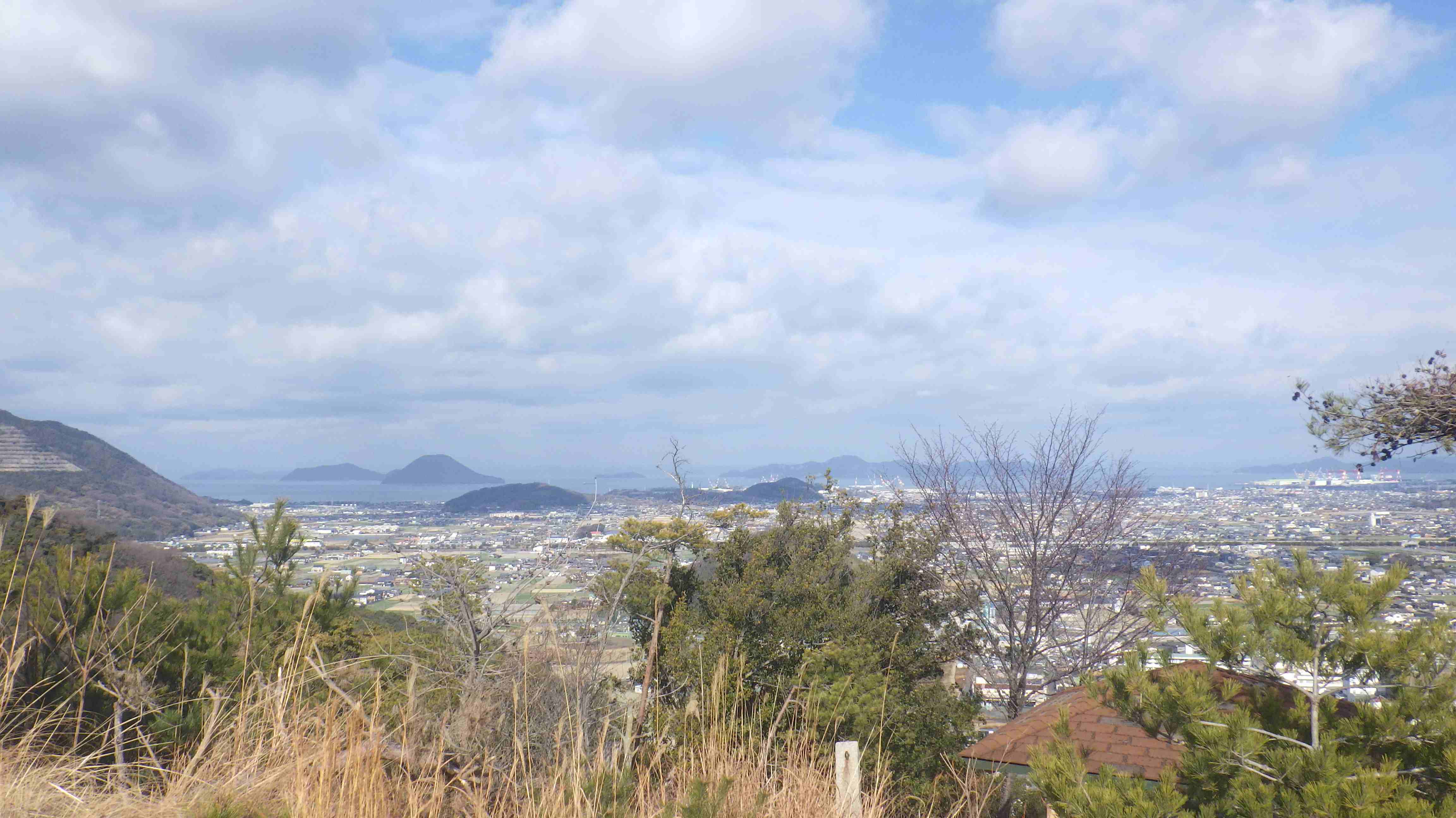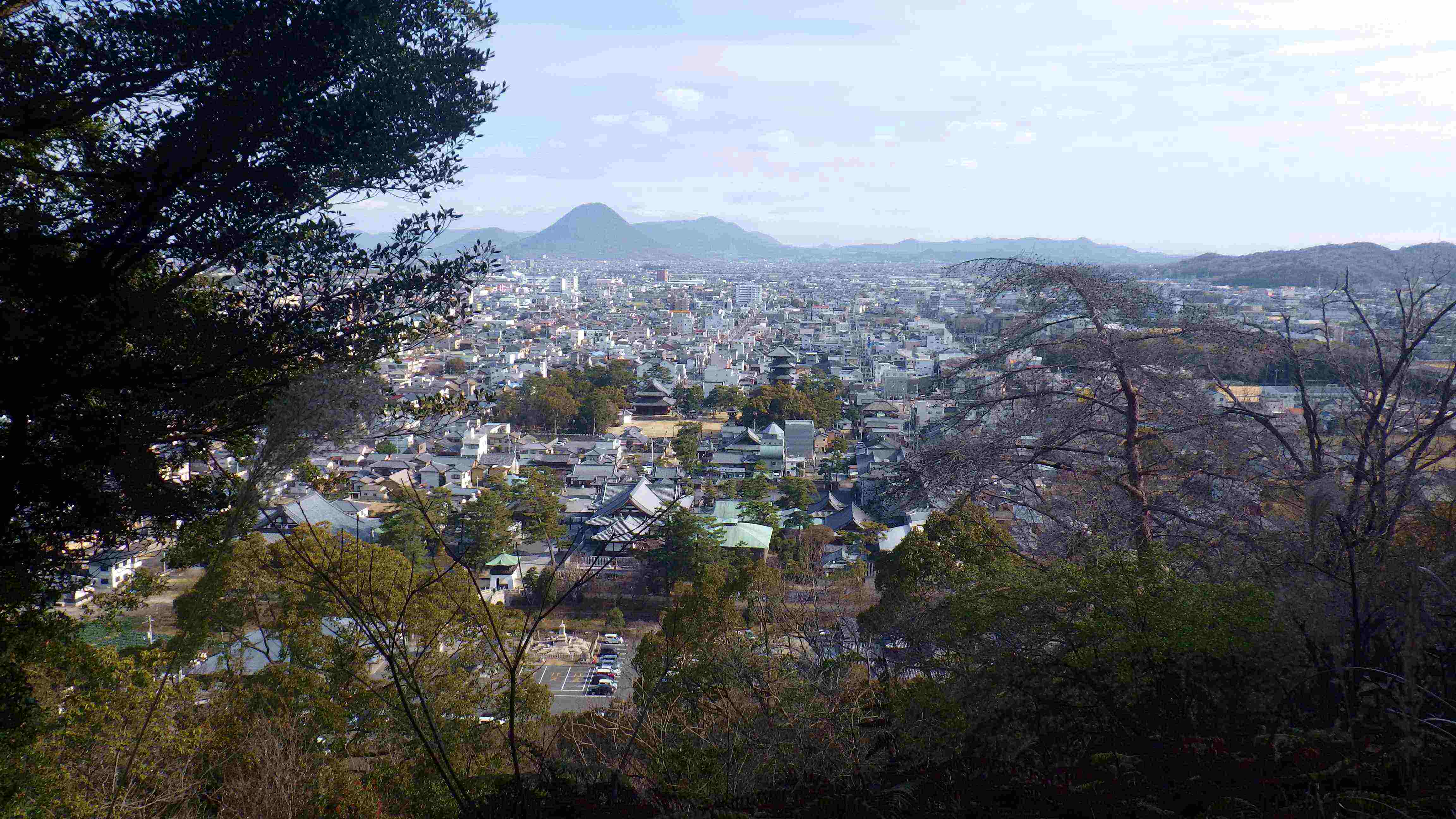 山頂の真下には、善通寺が見えます。中央に五重塔が有るのが目印です。