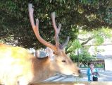 この大きな伽藍は興福寺中金堂(ちゅうこんどう)です。当時、日本の律令制度をまとめた藤原不比等(ふひと)が創建されたと伝わっています。長い時代の間6回もの焼失・再建を繰り返して、礎石だけになって居ましたが近年再建に踏み切り、平成26年(2014年)に再建落成式を迎え見事に創建当時の姿が蘇りました。