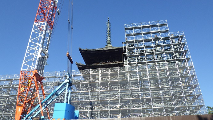 令和13年3月が完成予定だそうです。五重塔が再び全姿を現すのは七年先ですね(^^;