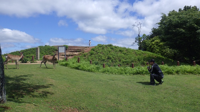岡山からまず直行したのは若草山です。実は若草山の頂上には古墳があります・・あまり知られていませんが、とにかく先ずは古墳の主(誰だか不明)に今回の奈良取材の無事をお願いしました。奈良市を一望できる最高の場所にあるので、尊いお方が眠っておられると思います。