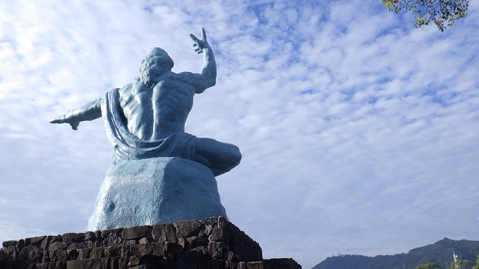 今日偶然に出た写真は、長崎の平和像の後ろ姿です。
