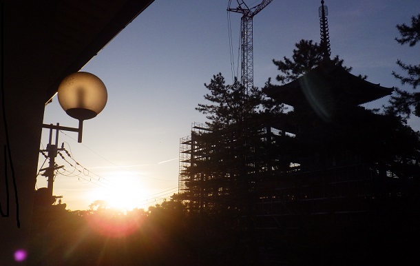 鹿を上から眺められる旅館は「大仏館」という旅館です。とにかく古い老舗旅館で、大正5年に創業だそうです。私の母が子供の頃に修学旅行(戦時中)に泊まった旅館で、ご縁なのか?私も小学校の修学旅行で泊ったのが、同じこの「大仏館」です。興福寺境内と言っても過言ではない立地で、車は無料で止められるので、奈良観光の中心地であるこのエリアを思う存分回れます(*^^)v