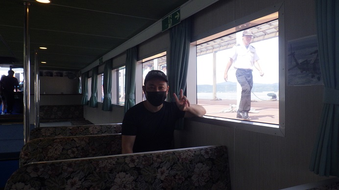 本当は二階デッキの方が良いのですが、私が熱中症に成ってはいけないので一階のお部屋に乗船しました。