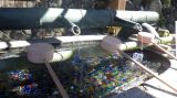境内に入ると涼し気で美しいビー玉の沈む御手水がありました。訪問した時が9月初旬で朝でも真夏の暑さ(*_*; 花手水もいいですが、暑い時はビー玉が視覚から導く涼しさを感じ、とても良いですね(*^。^*)明日香村取材記つづく