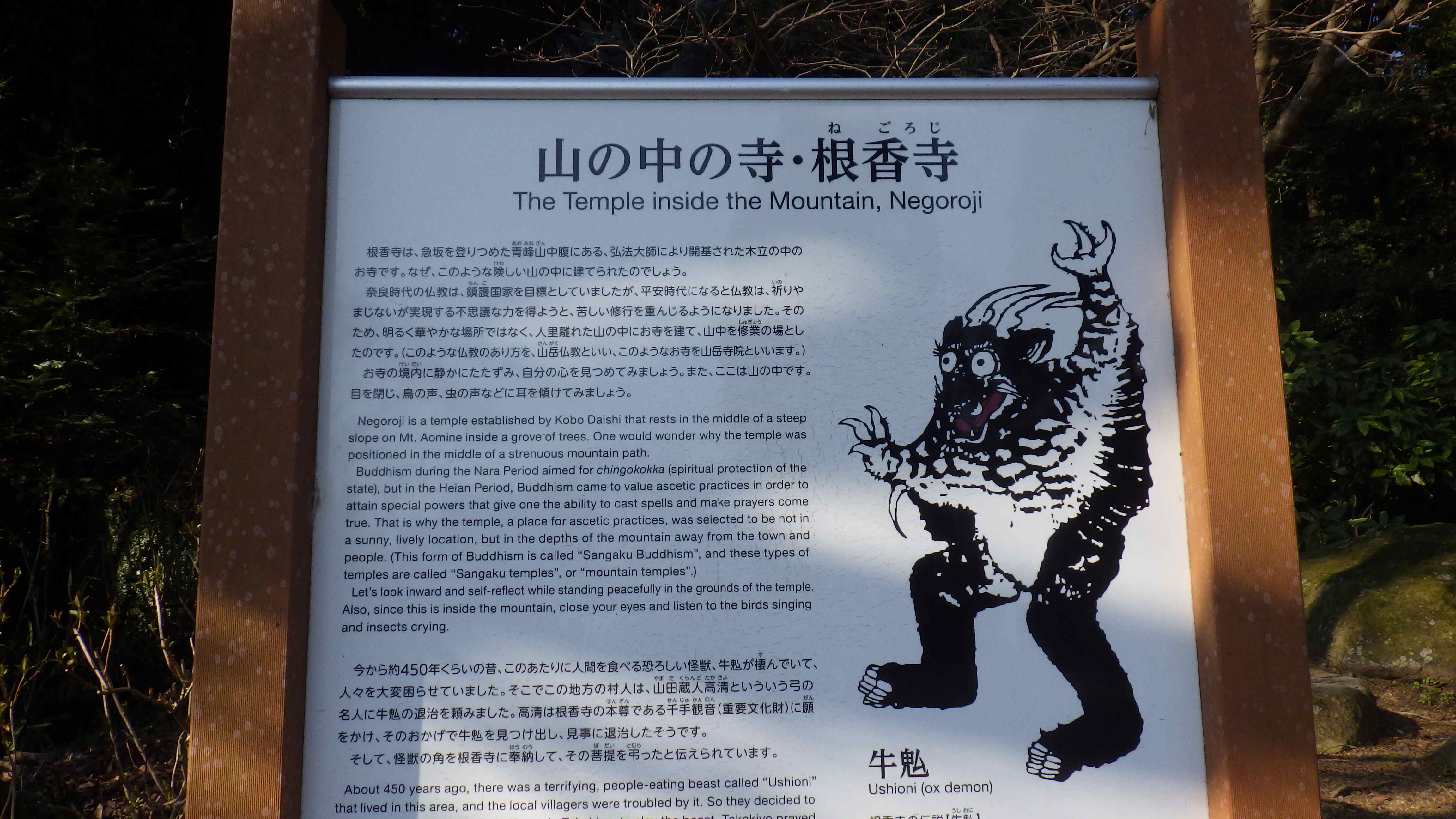 これは、「牛鬼(うしおに)」と言い、450年ほど前にこの山の中に住んでいた恐ろしい、怪物です。