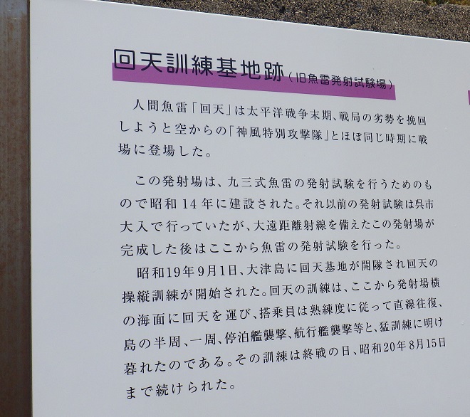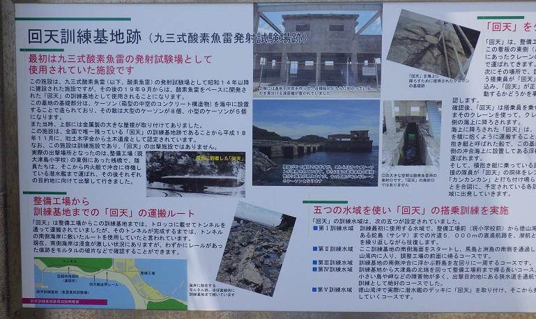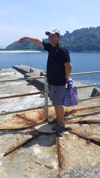 梶川氏の足元は、回天を海上に降ろすために使用されたクレーンの基礎跡です。戦争慰霊の旅報告つづく