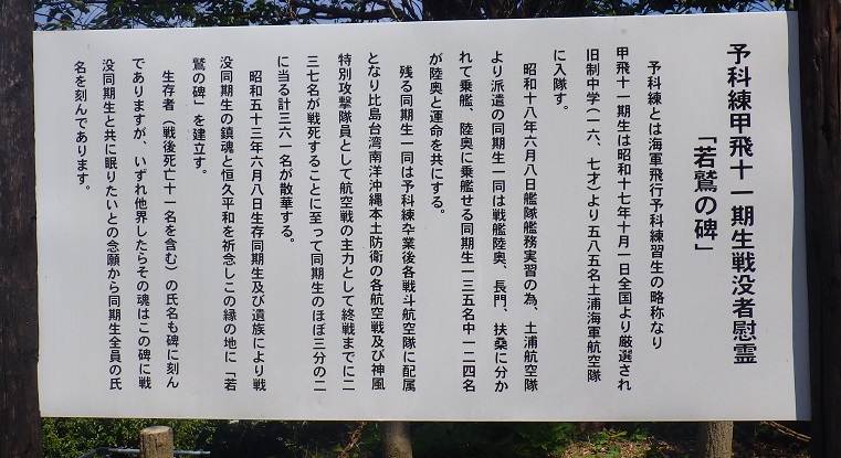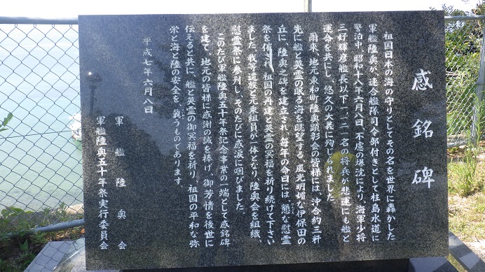 戦艦陸奥の慰霊公園には、乗組員以外の慰霊碑がありました。それは、たまたまその時に研修の為に乗艦して奥陸と運命を共にした土浦航空隊の予科練さん(16歳、17歳)の124名の慰霊碑でした。