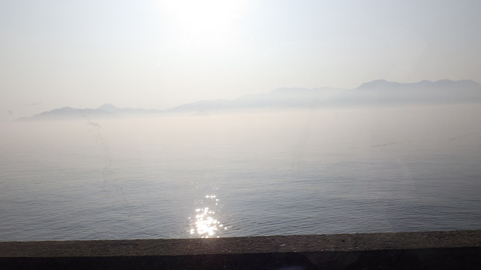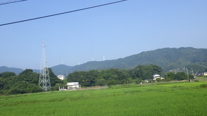 写真は上関に到着する前の風景で、山頂の風車は平生町にある物でここは展望台にもなっていて、美しい瀬戸内海が一望できます。