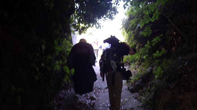 目的地に到着!早速、慰霊碑に向かいました。73年前に埋葬された場所は山頂にあります。
