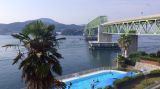 写真は宿泊ホテル(大観荘)から写した周防大橋で対岸が柳井の街です。