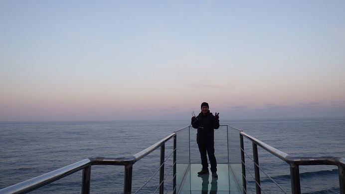 でも、このデッキの床がガラスに成っていますので・・(◎_◎;)私は怖くて、真悟先生の写真を撮るのがやっと・・一番端に行く事が遂に出来ませんでした。
