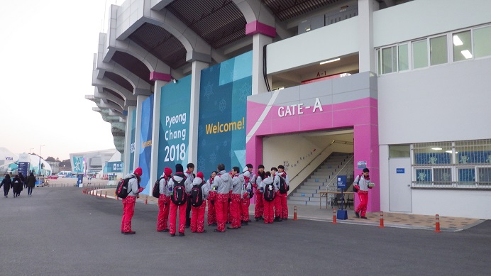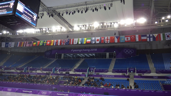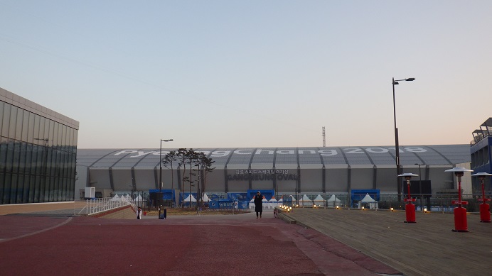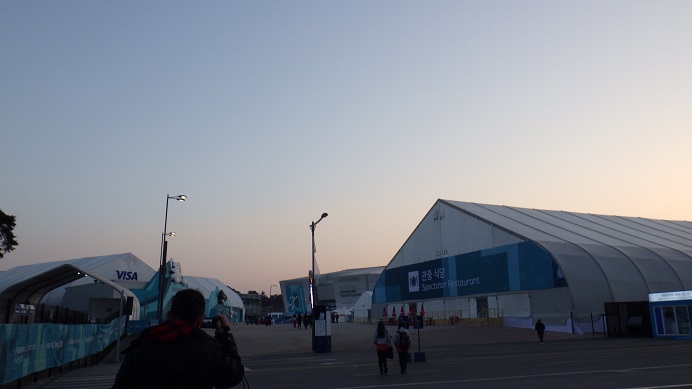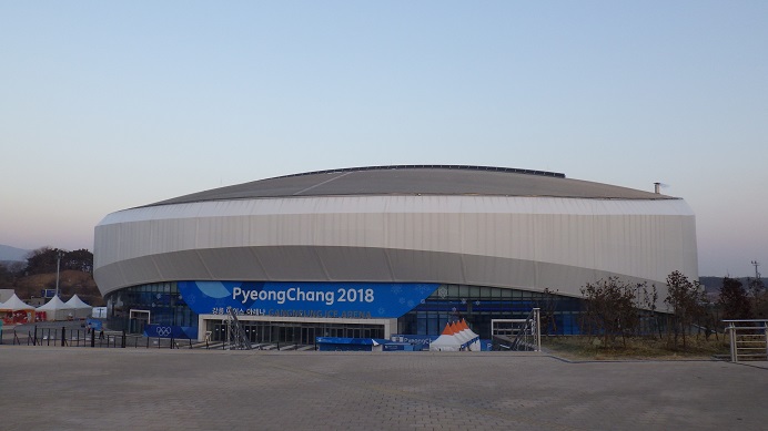 そして、ここがフィギュアスケートとショートトラックの会場です。私達が入ったゲートからは一番奥なので、少々は歩きましたが同じパーク内に各競技の会場があり、コンパクトに納めたオリンピック施設は他のオリンピックより移動も楽で、ピョンチャン五輪成功への要因だと思います。