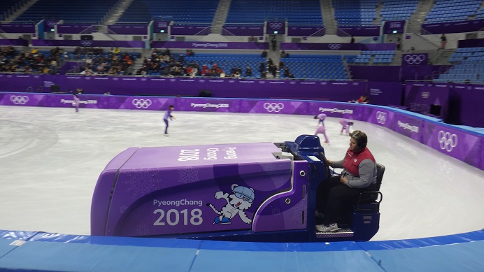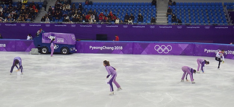 普通は運動靴などで、係り員が氷上を歩いて穴を埋めるのですが、ここでも韓国人の美へのこだわりを見ました。