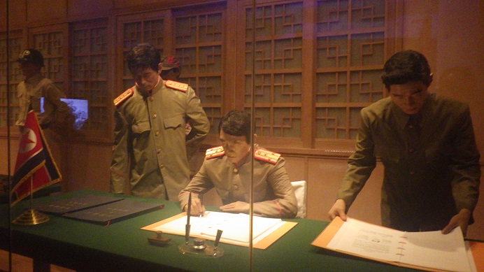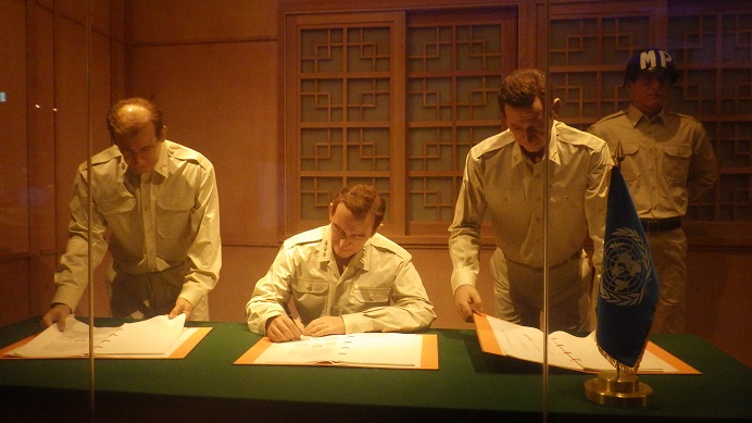 朝鮮人民軍最高司令官及び中国人民志願軍司令員のサインの様子・・韓国軍が居ないのは国連軍に含まれるから?朝鮮戦争の裏にはそれに関与した国々の複雑な事情(国益)があるようです・・・(*_*;