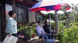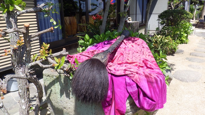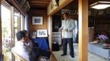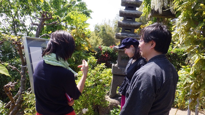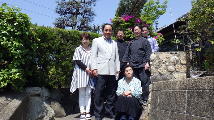 庭にはパラソルと椅子が設置されていて、そこからは美し瀬戸内海の島々が眺められます。お客様が途切れた時間に、真悟先生&梶川氏は海を眺めてのんびり感を味わっていました。