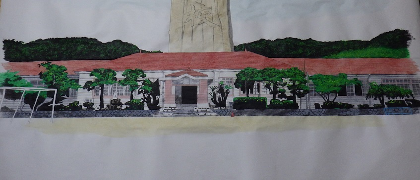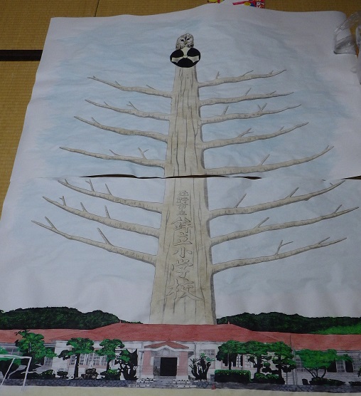 真悟先生の準備したのは、鉾立小学校を正面から見た全体の姿の絵です。