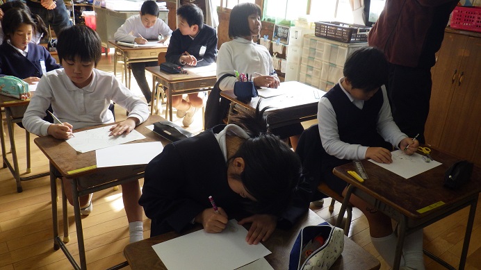 明日、1月23日(火)は鉾立小学校の全校参観日が有りその時に今回の授業の完成作品展示があります。