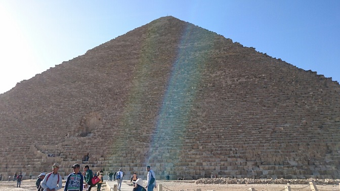 この写真は真悟先生のスマホで撮ったクフ王のピラミッドですが、不思議な光が写っています。
