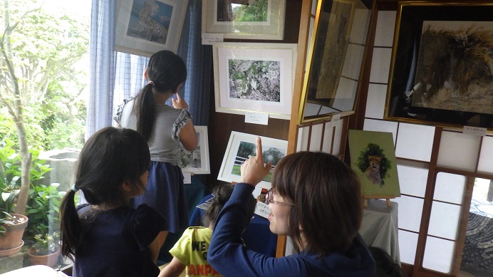 まるで動物園に来たように「ぞうさん、らいおんさん、うさぎさん・・」等と絵を見てはお喋りしてくれる、子供達の様子がかわいらしいです。真悟絵画は特に子供達に観てもらいたい絵画です。