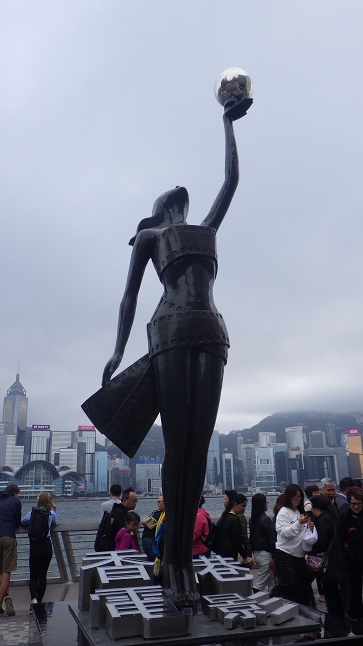 「アベニュー・オブ・スターズ」に到着(^^)vここは何かと申しますと、香港映画業界で活躍した人物を讃える為に建造されたプロムナードなのです。
