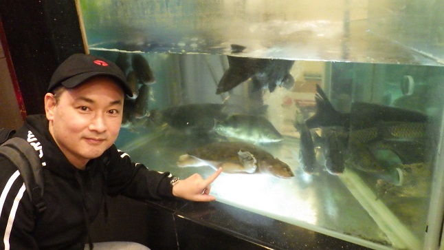 新鮮な食材をアピールか?日本の活け魚料理屋さんのように水槽のお魚が私達を迎えてくれました。でも、よく見ると大きなスッポン!なんか凄い(゜_゜)