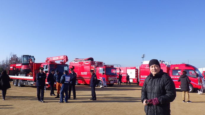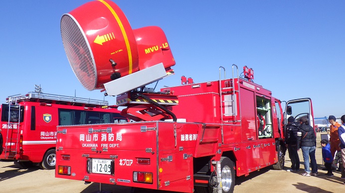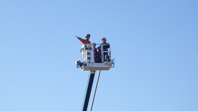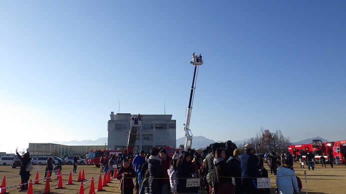 かなりな高さです(◎_◎;)岡山市内も高層マンション等が増えたのでこのような高い梯子が必要なのでしょうね。真悟先生も参加したかったのですが、これは子供限定だったのであきらめざるおえませんでした(^^;)
