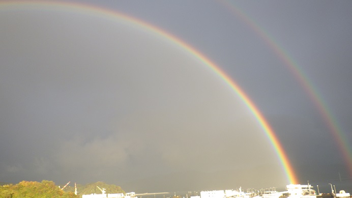 舞鶴取材記のつづきです。ダブルレインボウの出現に驚いた後に、窓から港を眺めていると次の驚きがぁ~!