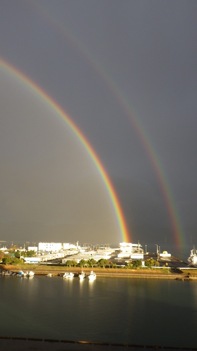 翌朝、窓を開けるとナント!目の前に二重の虹(ダブルレインボー)が現れているではありませんか!!大きすぎて全体が写せないぃ~('ω')ノ