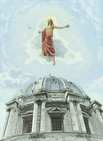 そして、両脇に飛ぶ2羽のハト・・この絵は色々なメッセージが込められています。いつの日かこの絵の意味を説明できる日が来ると思います。お楽しみにして下さい・・近年中には、発表できると思います。