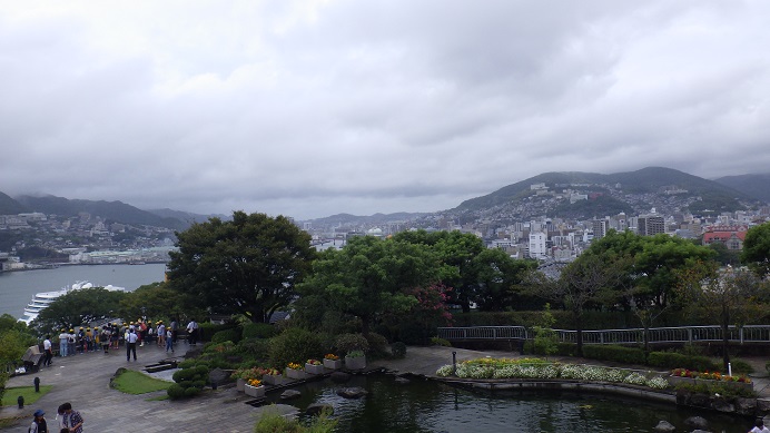グラバー園からの景色は長崎港と稲佐山(いなさやま)、長崎市街地が見えます。1859年(安政6年)長崎開港後に移住したイギリス商人のグラバー達は、この長崎の景色を見ながら、日本での商売などの構想をねっていたのだろうなぁ~と思いを馳せました。