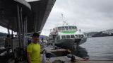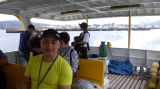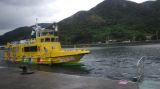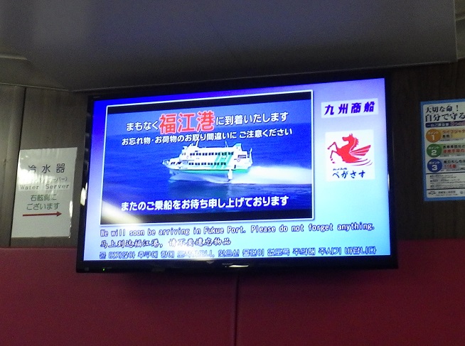 福江港から20分ほどの乗船で田ノ浦港に到着!こんなに可愛い船に乗っていたのだぁ~♥とあらためて黄色の定期船を見て驚きました。