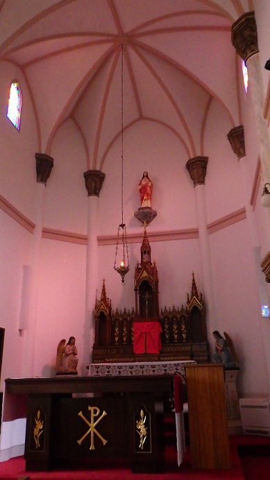 牢屋が有った場所には小さな教会が建てられています。五島ではマリア像を見る事が多かったのですが、ここでは聖ヨハネ像が屋根から私達を迎えてくれました。
