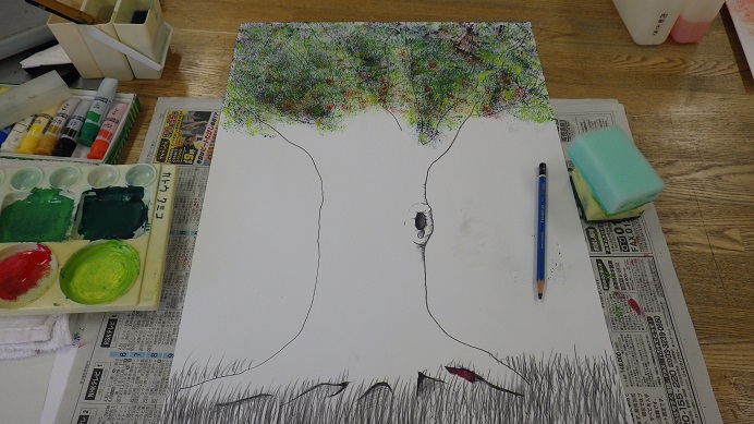 完成した絵がこれです(ヒョウは事前に描いていた)