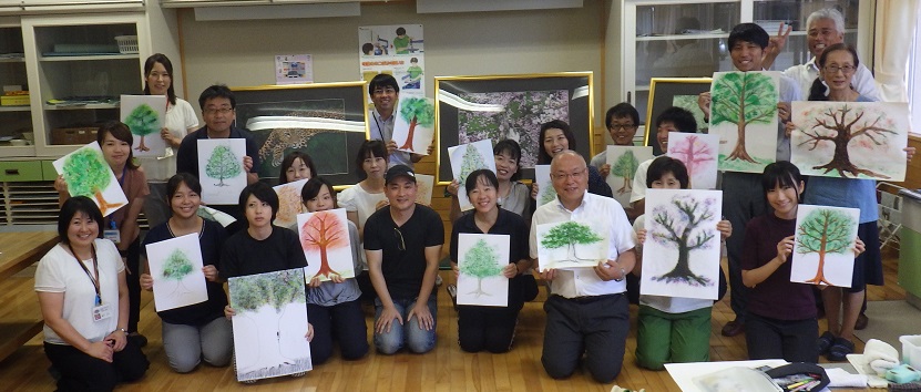 参加者全員の記念撮影です。素敵な作品の完成と、皆さんの笑顔が今回の研修会大成功!を物語っています。