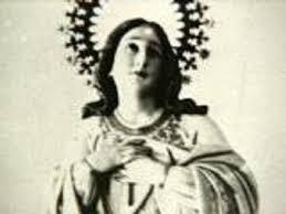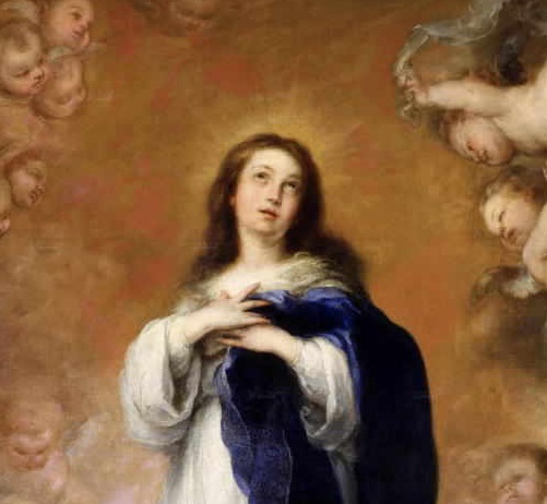 このマリア様の絵は17世紀(バロック)に活躍した、スペインの画家ムリーリョの「無原罪のお宿り」という作品(部分)です。この絵のマリア様をモデルに造られた美しいマリア像が1914年に長崎の旧浦上教会にイタリアから運ばれてきました。