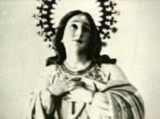 これは、被爆前のマリア像です。木像ですが、目の部分はガラス製だったので溶け落ちてしまいました。